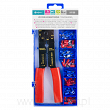W zestawie znajduje się zaciskarka 3-w-1, która pełni funkcje zaciskarki, ściągacza izolacji oraz obcinarki przewodów, co czyni ją niezwykle praktycznym i wszechstronnym narzędziem.